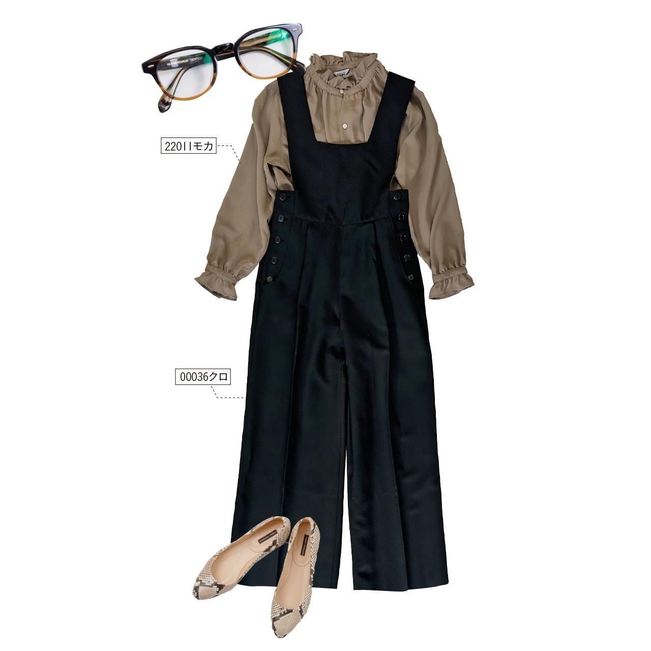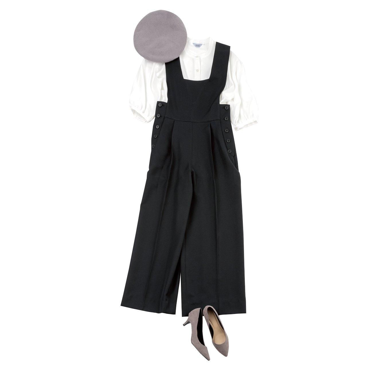 スクエアネックのキュロットパンツはバルーン袖のブラウスと好相性。裾幅が広く、靴にかかるくらいワイドなパンツラインが人気です。制電糸を織りこみ髪の毛やホコリの付着を緩和、薬剤による色抜けもしにくい生地です。この商品は裾上げが必要です。