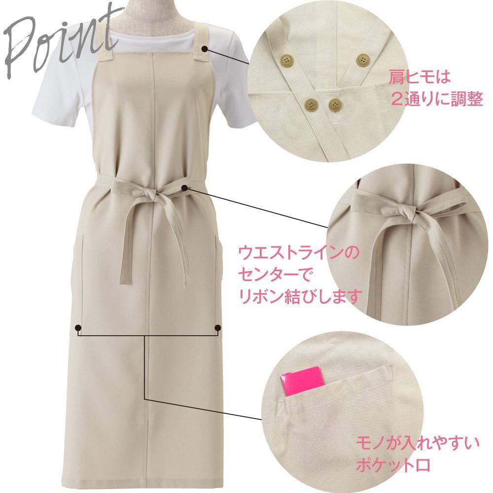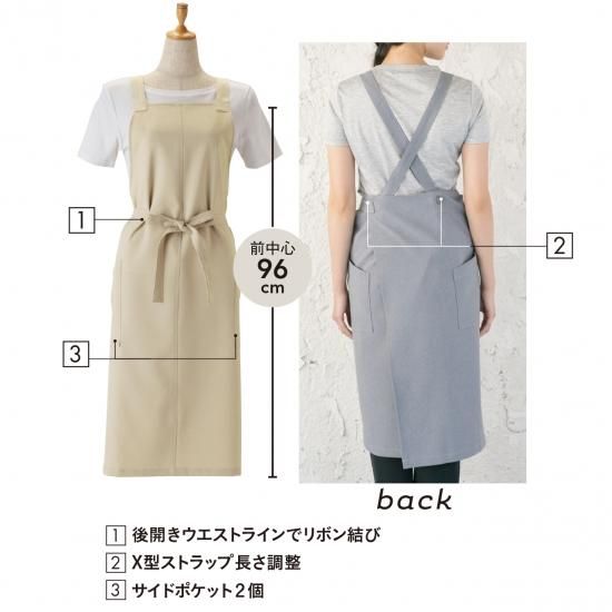 ●仕様:後開きウエストラインでリボン結び、肩ストラップX型、前ポケット2個