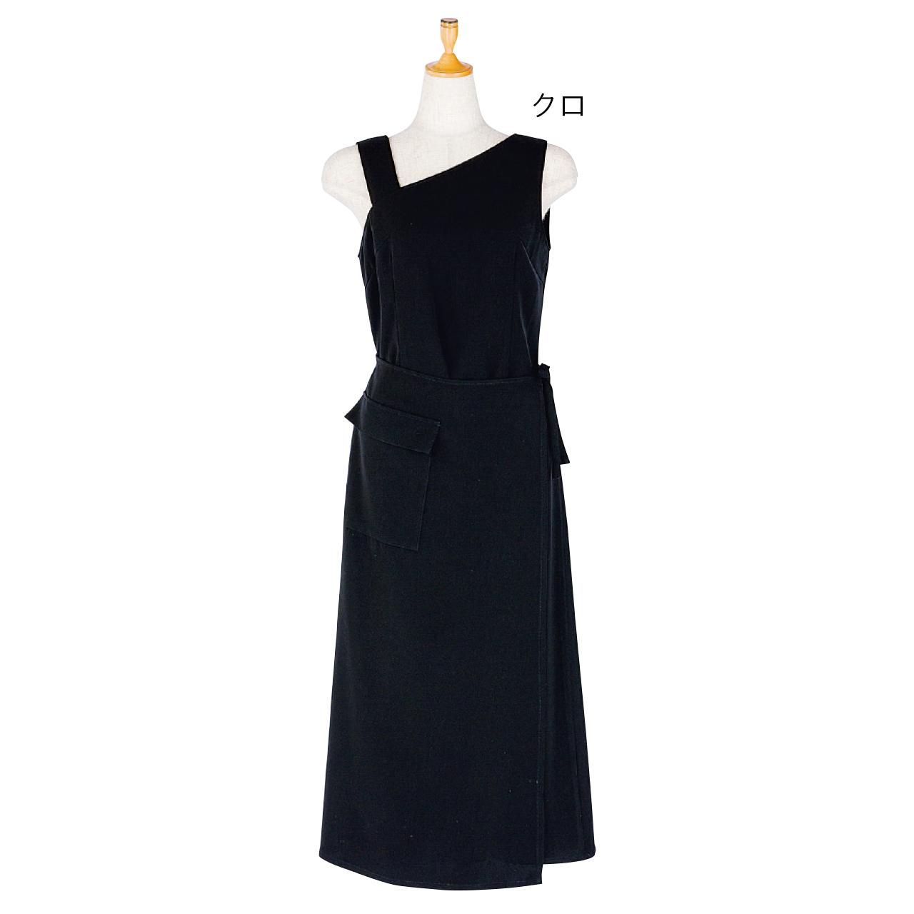 アシンメトリーなロング丈ワンピースです。スカート部分は巻きスカートのようなデザインです。高級感のあるベネシャン生地を使用してます。