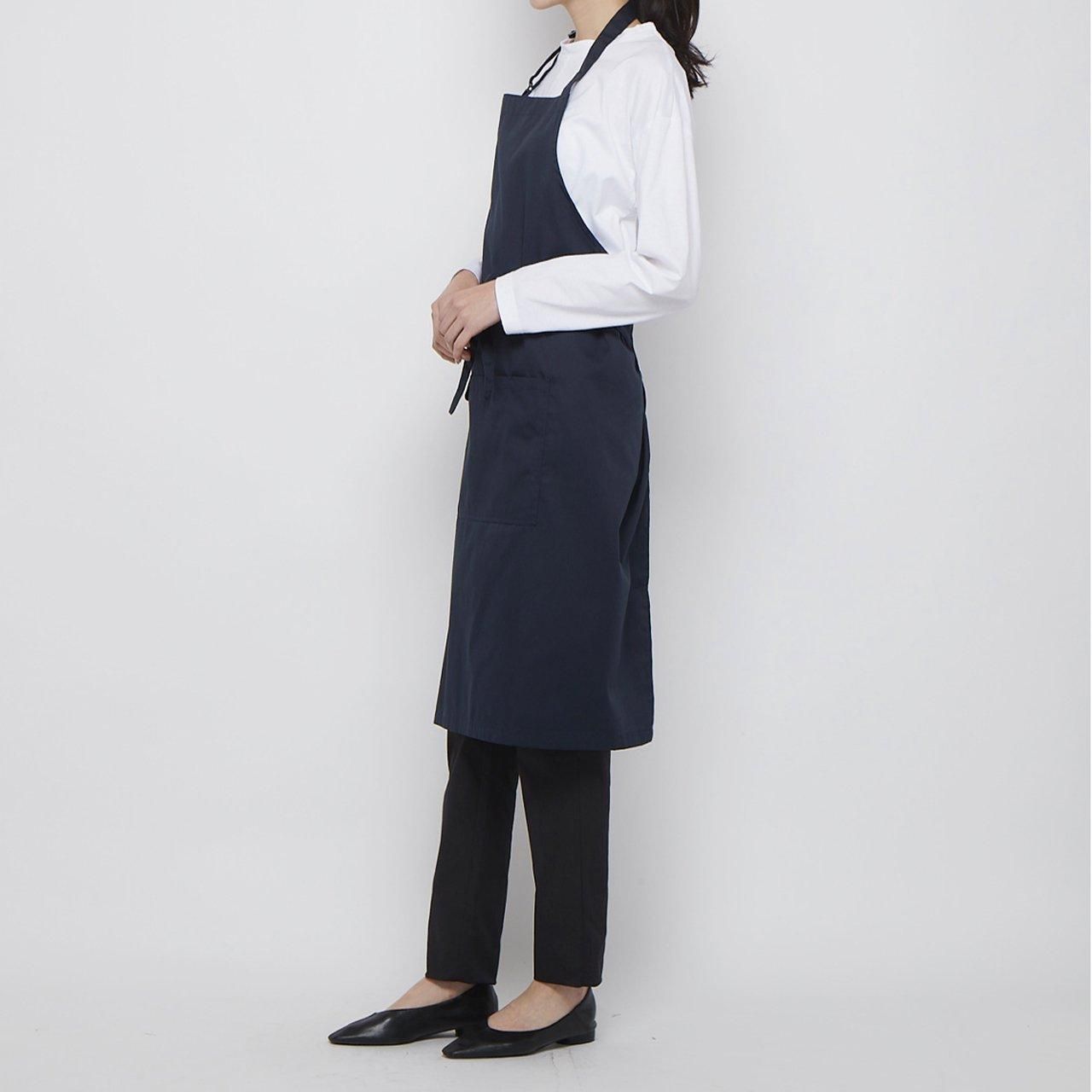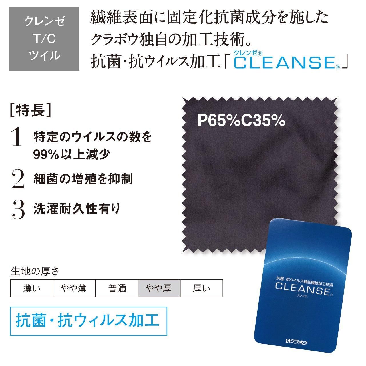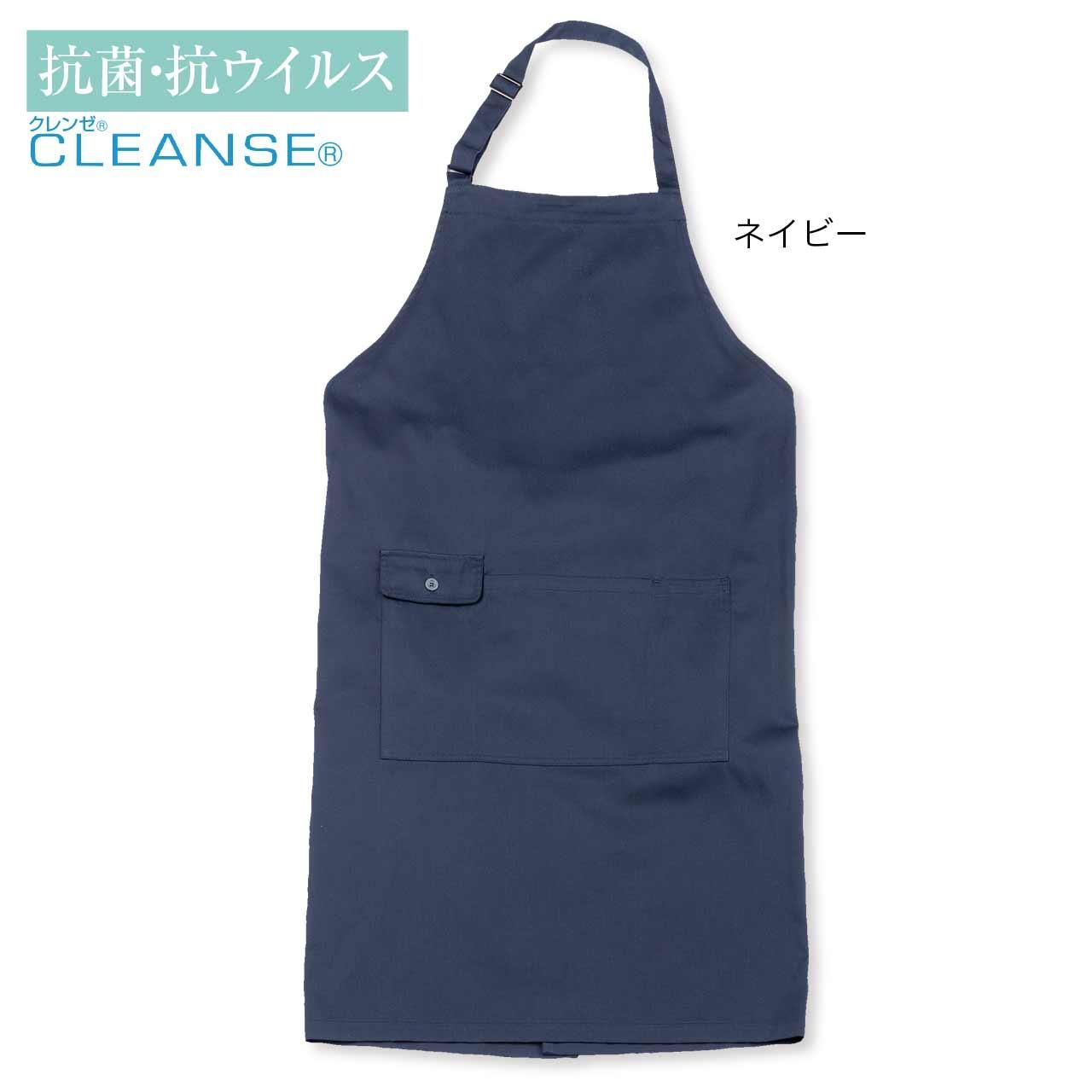 抗菌・抗ウイルスクレンゼシリーズのエプロンです。クレンゼ加工を行った繊維素材では新型コロナウィルス デルタ株(hCoV-19/Japan/TY11-927-P1/2021)クラボウ独自の試験によって、効果も確認しています。前ポケットがデザインのポイントになった新デザイン。フタつき部分以外はポケットに髪の毛が入ってもたまらない、両端に穴を作理ました。