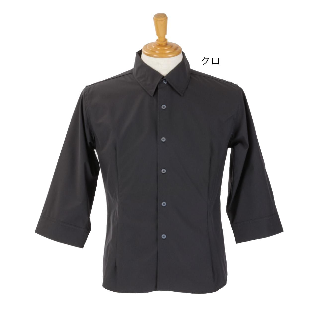 着丈短めなデザインが脚を長く見せる、メンズのスリムシャツ。ベーシックなデザインなので合わせるボトムを選びません。ストレッチ素材の採用でより動きやすくなりました。生地は4方向に伸びるストレッチ性、吸水透湿性に優れ、肌触りはサラサラで快適。耐久撥水性もあるため、水滴の状態で払えば汚れもつきにくく、薬剤による色抜けしにくいのも特徴です。植物由来の原料を使った環境にも優しい素材です。