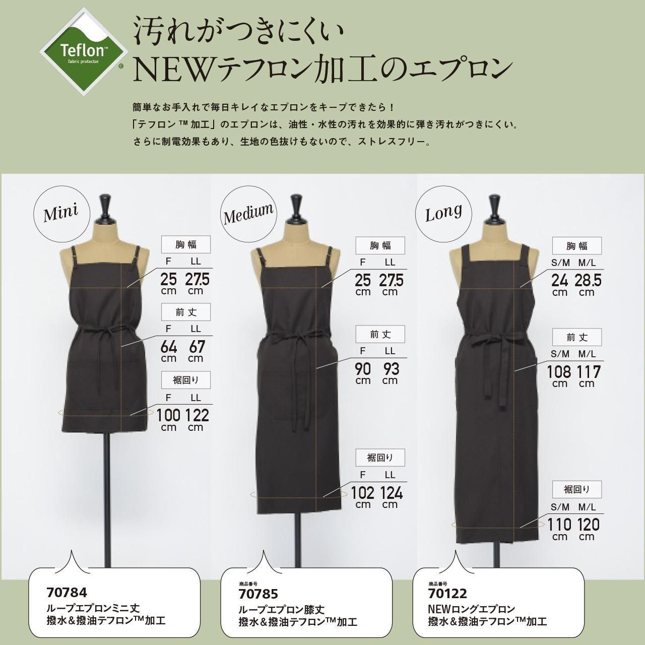 70784 ループエプロンミニ丈 撥水&撥油テフロン加工