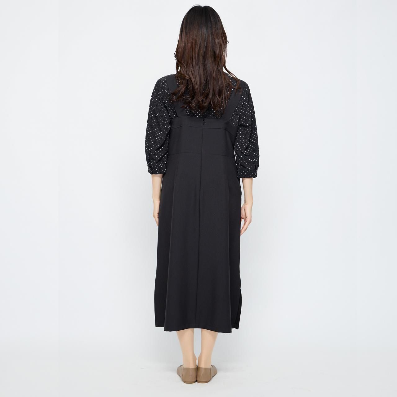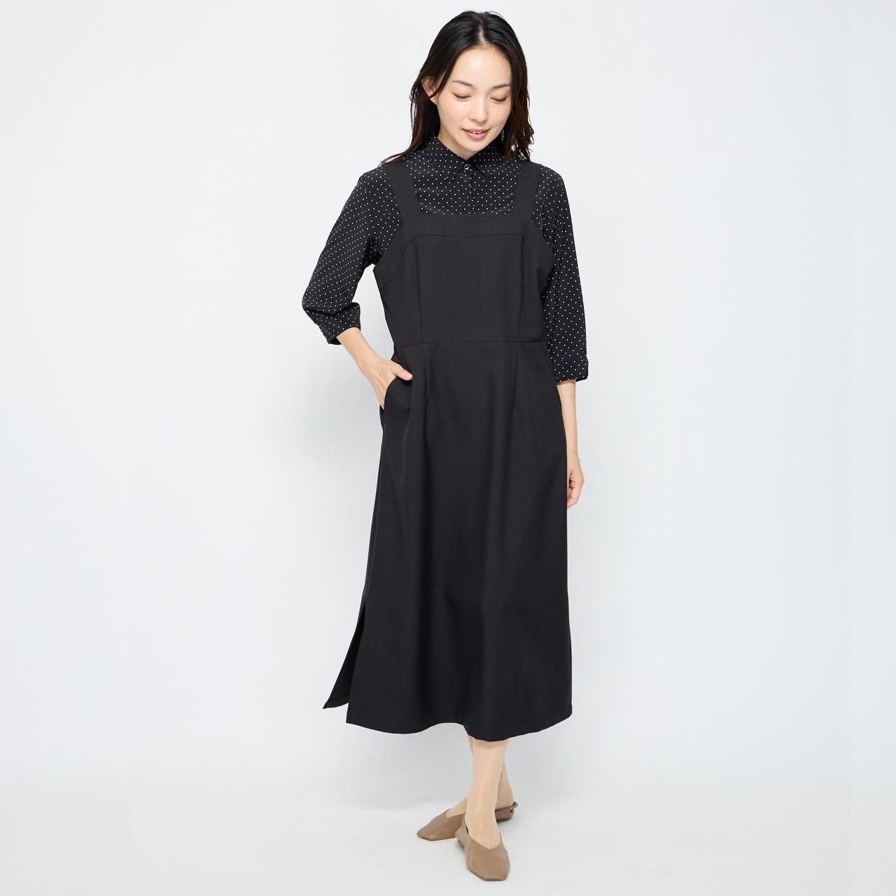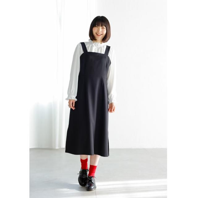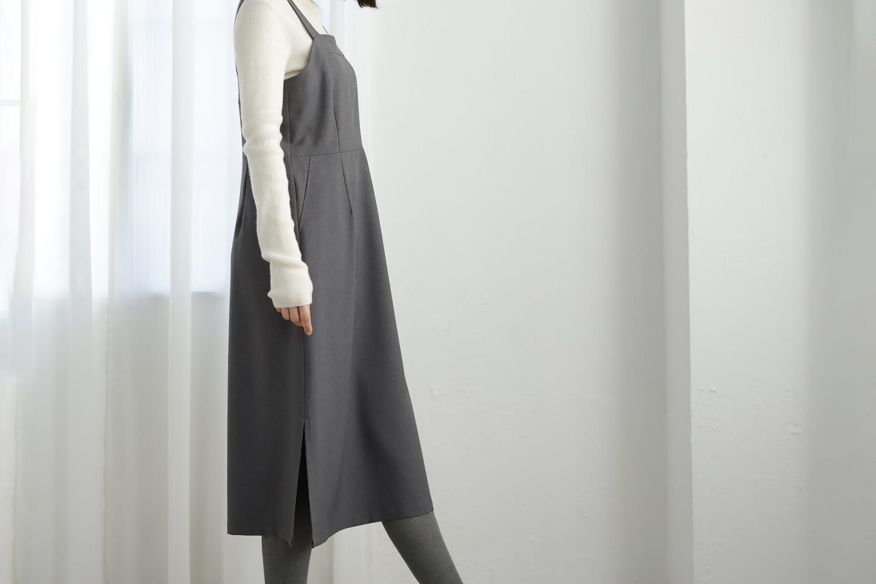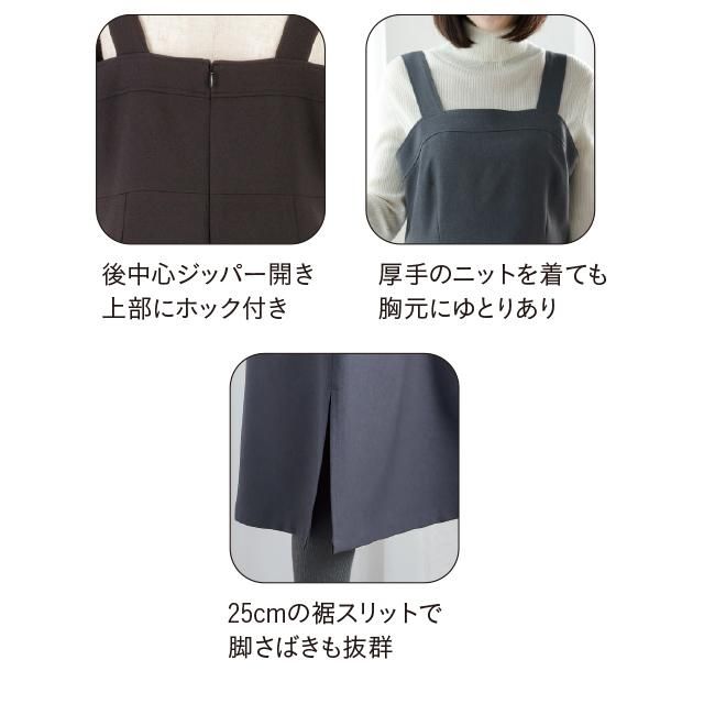 生地の機能性とサロンワークに快適なデザイン性。すっきりと縦ラインを強調してくれるジャンパースカート。
