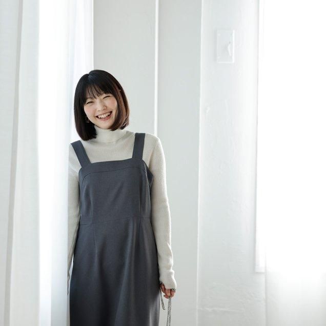 胸元はゆとりを持たせているので、中にカットソーやシャツはもちろん、ニットも着用可能。