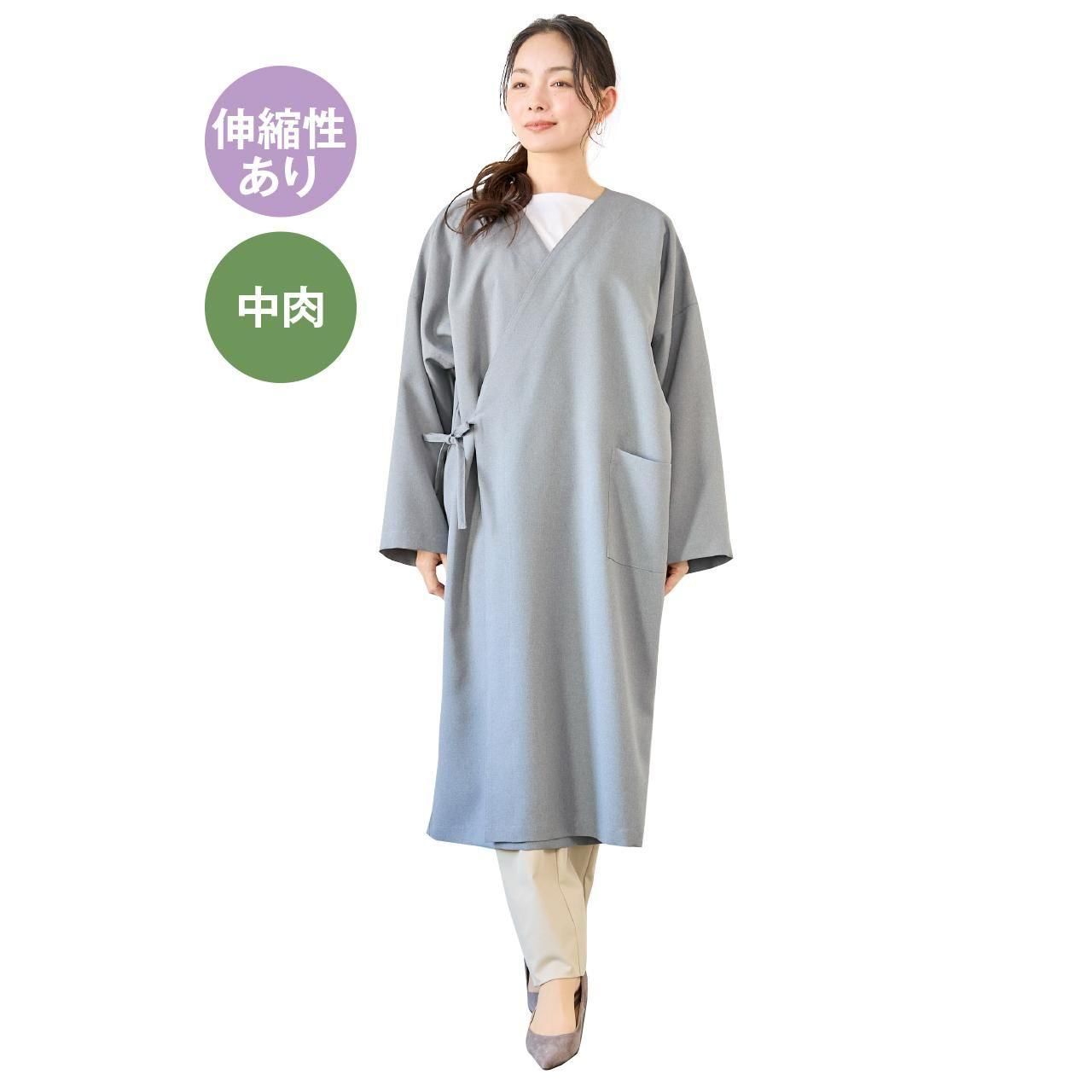 内外2箇所のヒモを留めるだけで簡単に着られて、ウエストまわりもゆったりサイズ。