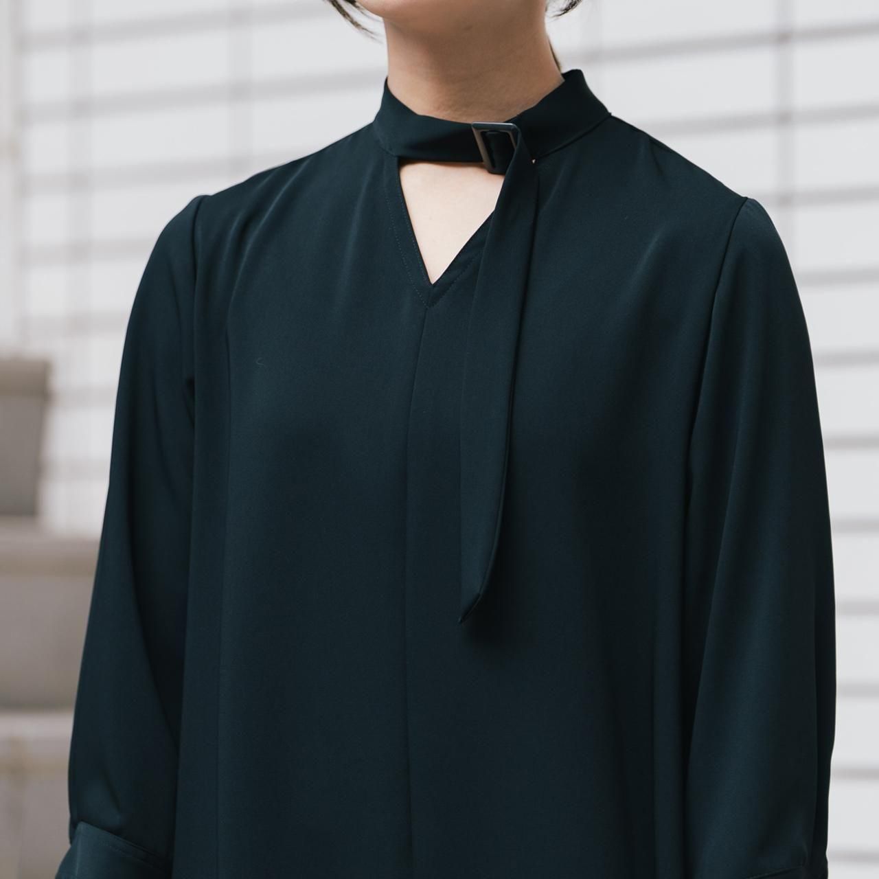 衿のバックルは可動式です。長めのタイは前に垂らすのがおすすめです。